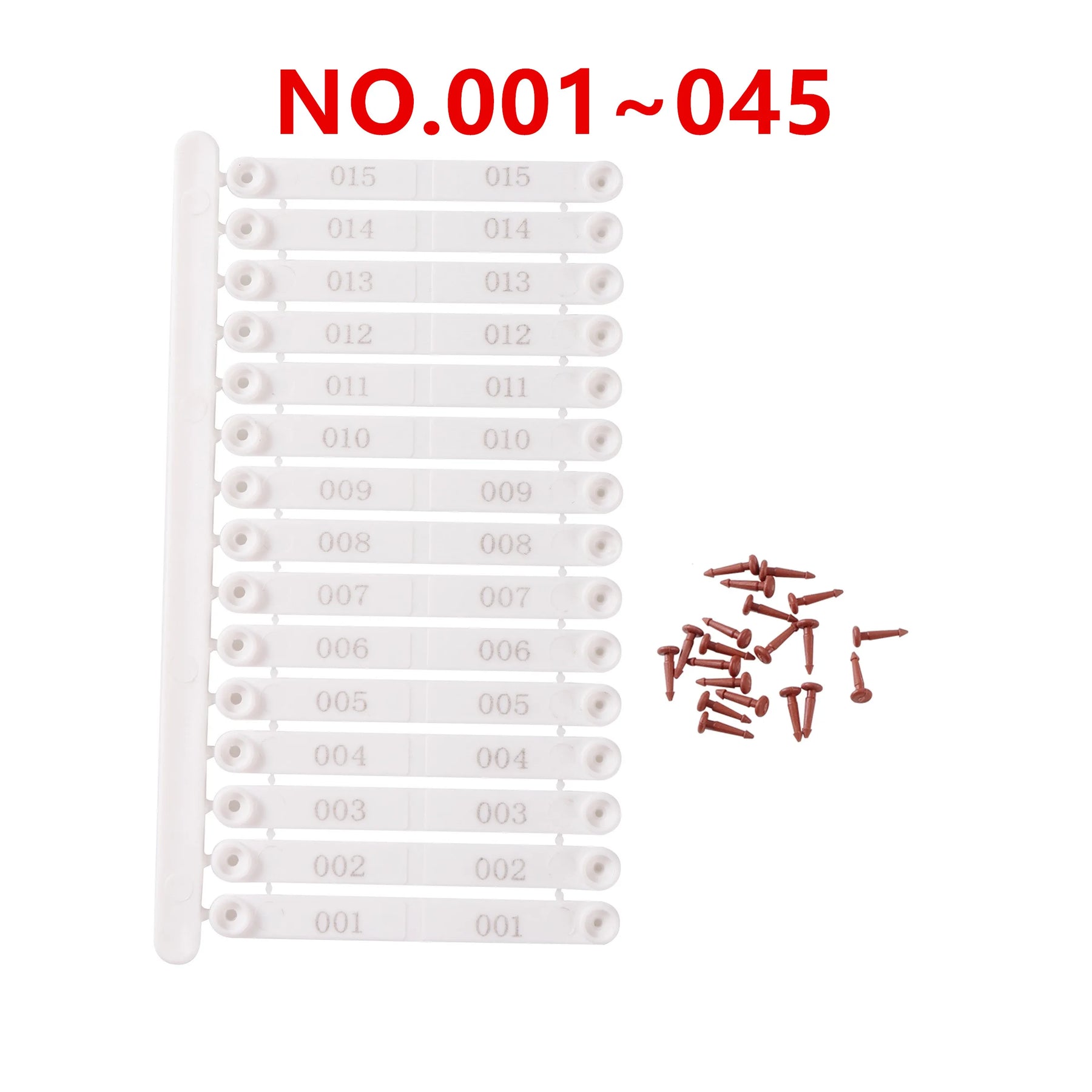 Since the brown nail accessory of the animal wing identification ring is very small, it needs to be manually installed at one end of the identification ring (larger hole), And you need your fingers to exert pressure on the top of the pliers before it can be installed normally.
