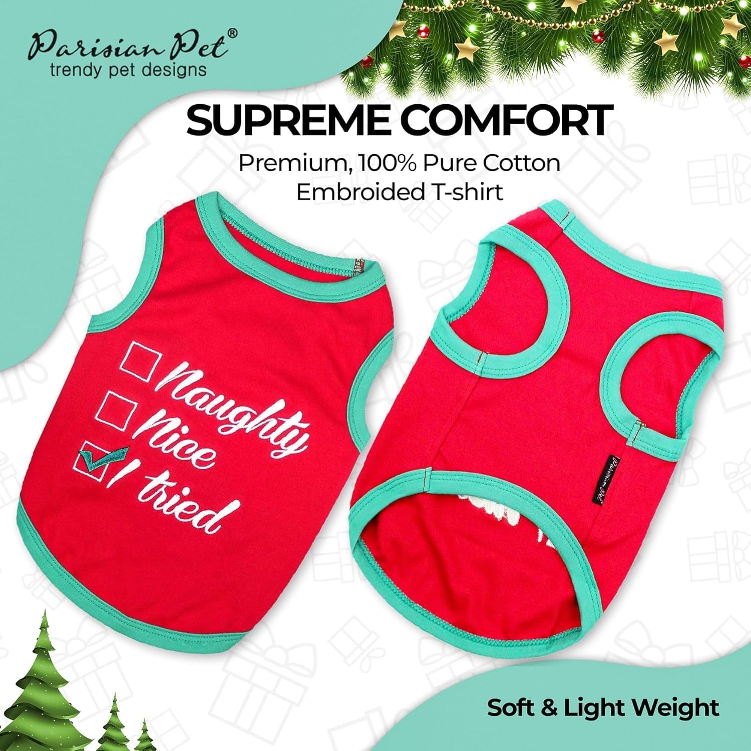 • [ STYLE WITH SUPERIOR QUALITY ] - Parisian Pet Christmas dog clothes feature a round neckline sleeveless and pullover design, ensuring your pet's comfort. Made from 100% breathable cotton, these doggie shirts are skin-friendly and perfect for keeping your pet cool during the heat of summer. Expertly stitched for durability, they are easy to wash and maintain, preserving their quality over time. These versatile dog tshirt are suitable for occasional wear or everyday use.