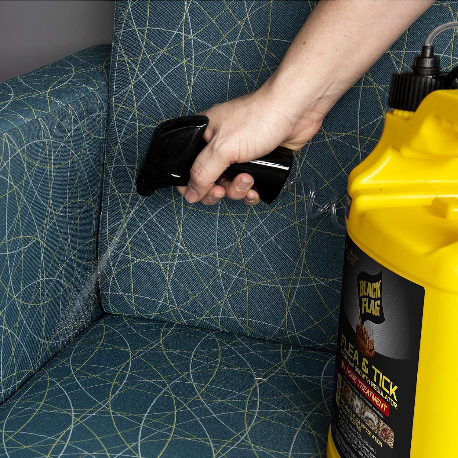 Insects invading your corner of the world? Whatever insect you're fighting, Black Flag products are dedicated to providing the tools you need to regain control. With formulas that act fast and never back down, Black Flag insect controls have been arming homeowners in the battle against invading bugs for more years than any other brand. Black Flag Flea and Tick Spray Plus Growth Regulator Home Treatment kills fleas, flea eggs, flea larvae and ticks indoors. Use it on carpets, upholstery, rugs and hard-to-reach places like baseboards and moldings. This formula contains Nylar insect growth regulator to break the flea life cycle by preventing fleas from developing into biting adults for up to 7 months. It also controls carpet beetles and dust mites. When used as directed, this product will not stain furnishings or carpeting. Inspect the treatment area for fleas two weeks after the initial treatment and reapply if necessary. If ticks are present, spray directly to kill. For long-term flea control, apply 1 gallon per 750 square feet. Use as part of a comprehensive flea and tick treatment plan that includes coordinated treatment of the home, yard and pet. Treatment and prevention work together, so it's key to treat all three areas simultaneously. This integrated pest management approach involves inspection, cleaning and targeting eggs, larvae and adults with the appropriate insecticides. Follow-up treatments are almost always necessary.