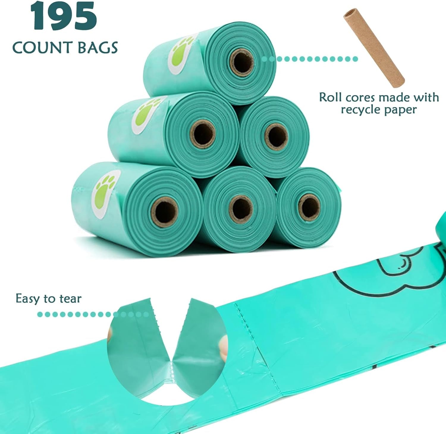 • Convenient: The dispenser with oversized oval-shaped exit makes it easy to access bags. It's worth mentioning that the dispenser has a fixed rotating shaft inside, which makes the process of extracting your bags smoother!