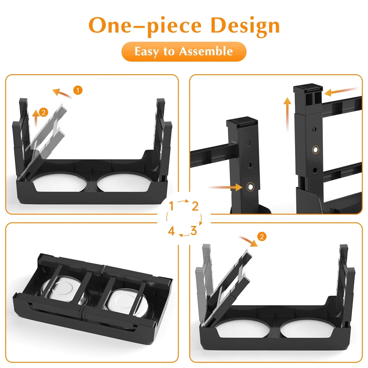 • 【Durable and Easy to Clean】Our dog feeding stand is made of high quality ABS material, non-toxic and harmless. It also includes 2 thick stainless steel dog food bowls which are dishwasher safe, hygienic, rust-free and durable. You just need to clean the dog bowls by hand or dishwasher, and the plastic pet food bowl holder wipe the surface with a soft cloth.