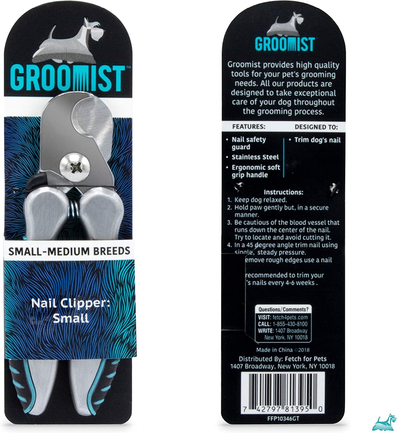 Groomist provides high quality tools for your pet's grooming needs. All of our products are designed to take exceptional care of your dog throughout the grooming process. The Groomist Dog Nail Clippers will help you trim your canine's nails with accuracy during your at-home grooming sessions. These professional nail clippers are made with sharp stainless steel blades, making them powerful enough to trim your pet's nails with one smooth, steady, and precise stroke. This also makes the pet nail clippers the perfect toenail clippers for thick toenails. Beautifully trimmed nails means less scratching on people, delicate furniture, and doors. Having well-maintained nails is also better for your pet. If you can hear your dog's footsteps as he or she walks on the wood floor, it is probably time for a trim. By using the nail clippers for dogs and grooming your pup sooner rather than later, you are saving him from painfully chipped nails and breakage caused during play time. The dog toenail clippers will keep your pup feeling and looking his best! The high-quality professional dog nail clippers are made with a safety guard, which helps prevent you from cutting the blood vessel that runs down the center of your pet's nail. The handles on the toenail clippers, and all Groomist tools, are made with ergonomic soft grip technology. These ergonomic handles help reduce hand fatigue and ensure that you are comfortable and safe the entire time you are using the fingernail clippers. The sturdy, easy grip handles are also non-slip. This is great if you are looking for heavy duty nail clippers or toenail clippers for thick nails. The ergonomic handles will allow you to have a firm grip on the small nail clippers, making these the best toenail clippers for thick nails. The stainless steel nail clippers are powerful enough to use as ingrown toenail clippers and heavy duty toenail clippers for thick toenails. These are the best dog nail clippers for thick nails. The heavy duty toenail cli